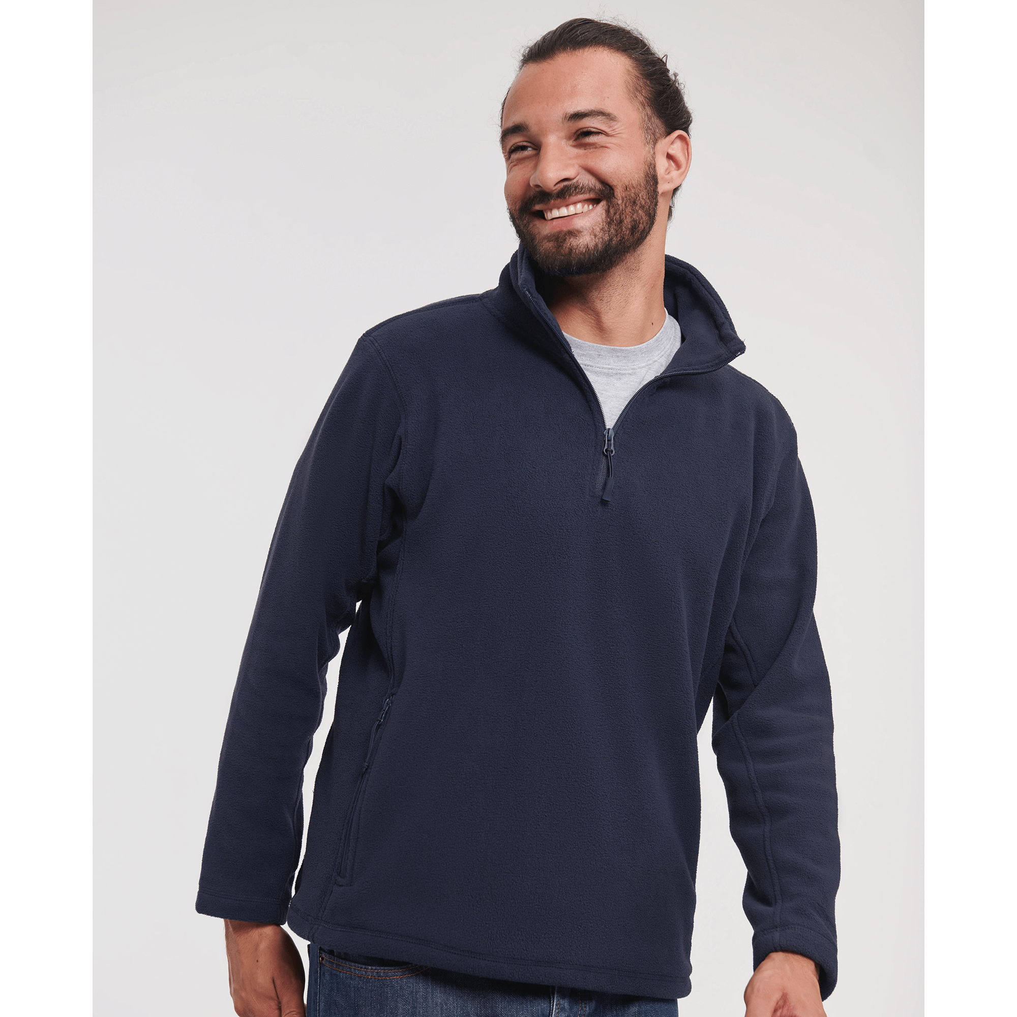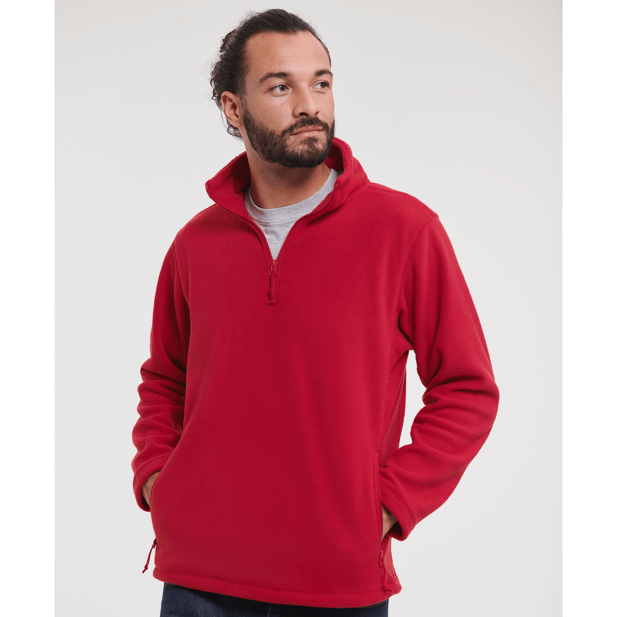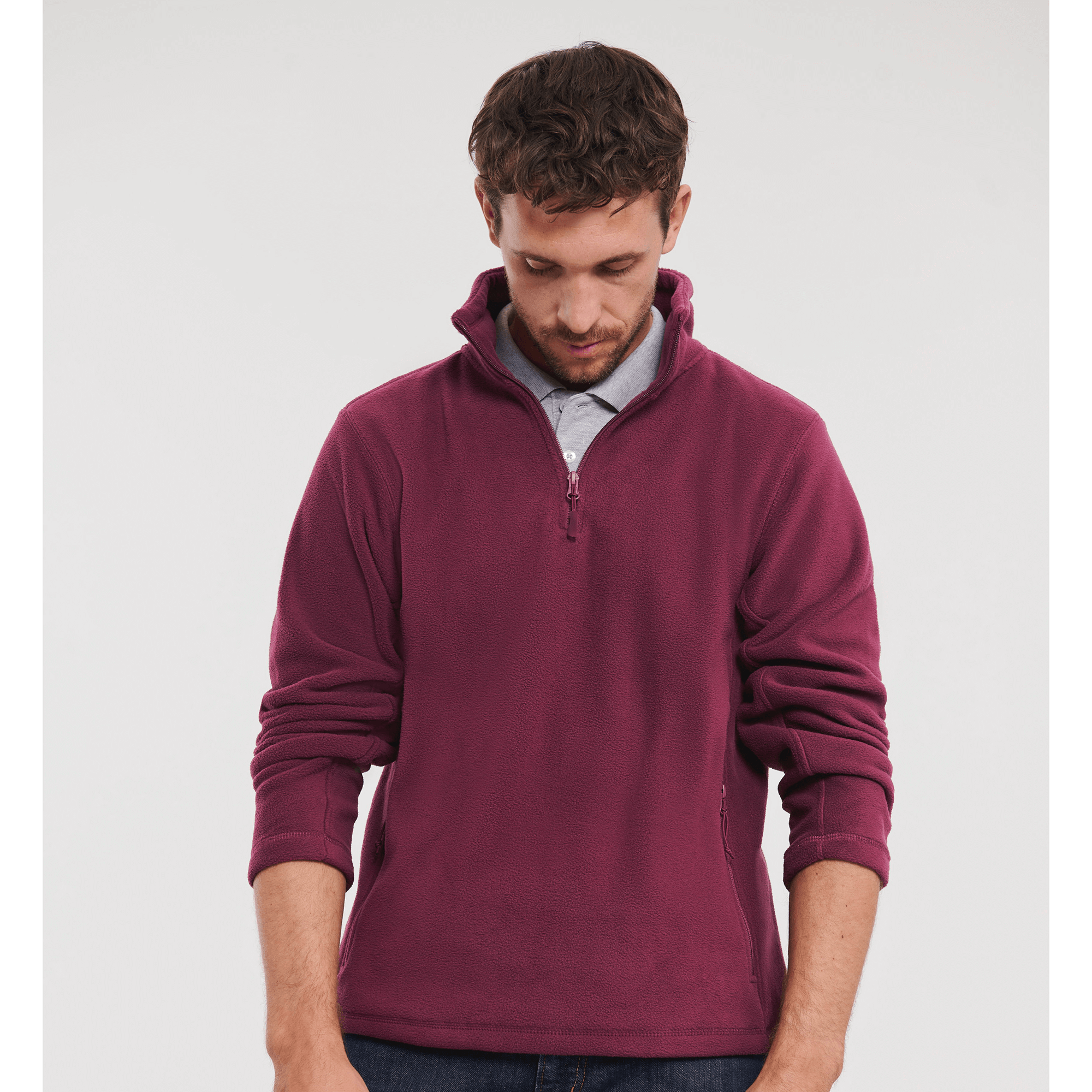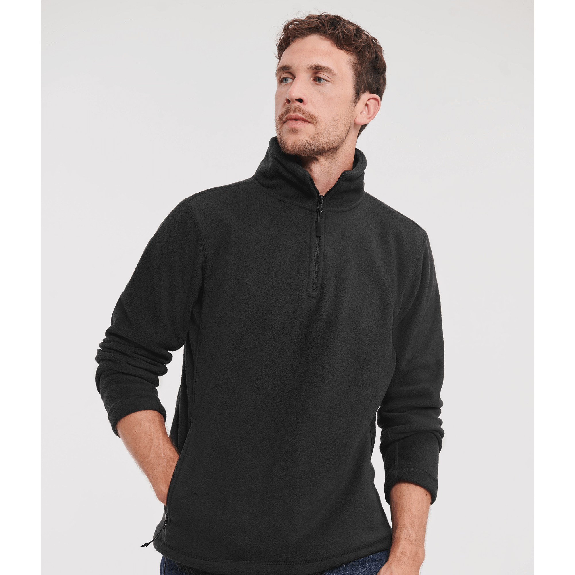 the compact fleece material, the smooth surface and the panelled construction allow for excellent fit and a more modern look than fleeces generally do, cadet collar, ¼ zip, side pockets with reversed zips and inner mesh lining, cord pulls on all zips, bungee cord in hem, Ant-Pilling-Fleece from 100 % polyester