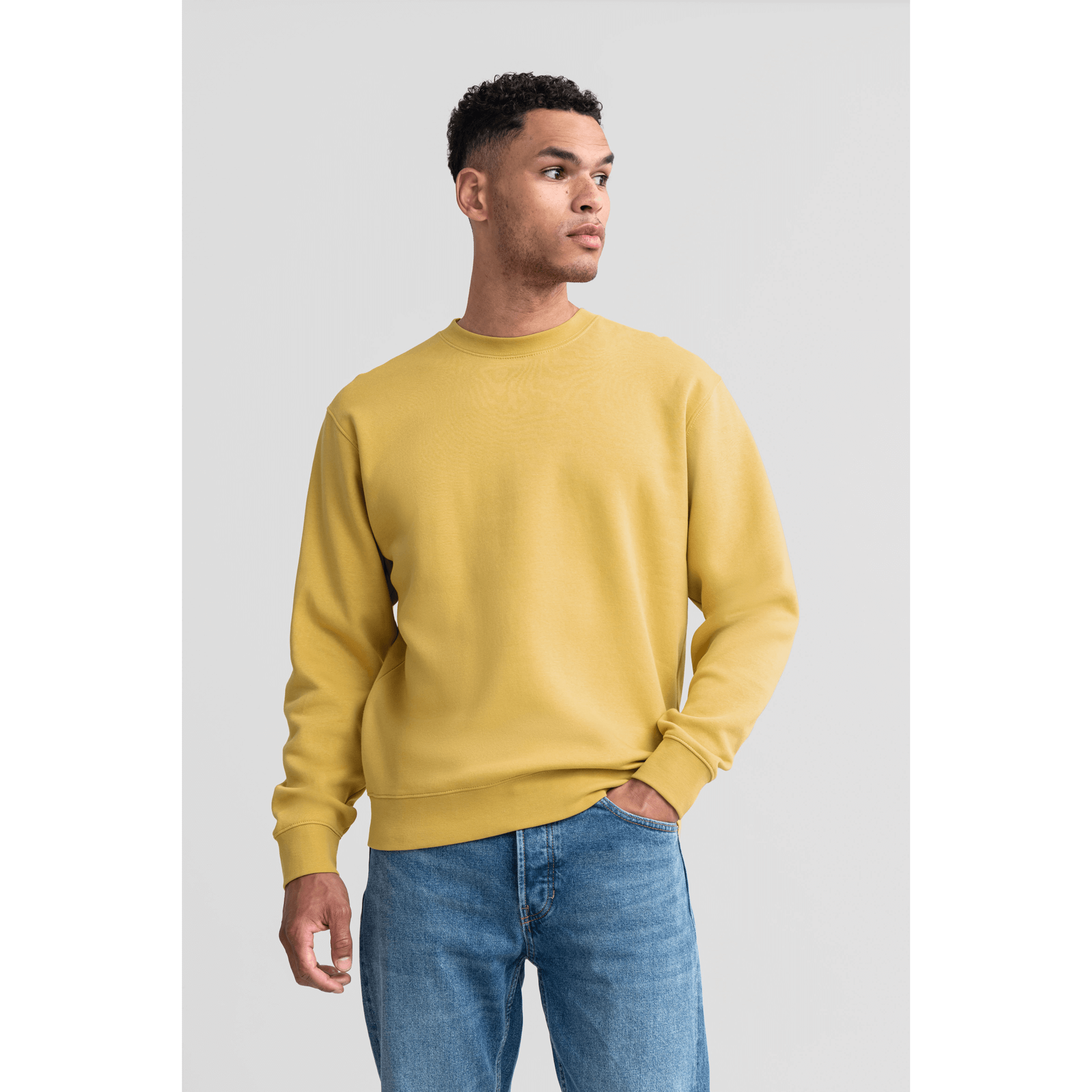 luxurious 3-layer fabric for wearer comfort and higher performance, set-in sleeve, straighter cut for contemporary look, wider hem and cuff constructions, slimmer shoulders and leaner arms, cover-seamed armholes, cuffs and hem, herringbone neck tape, side seams improve fit, 80 % combed, ringspun cotton, 20 % polyester (3 layer fabric)