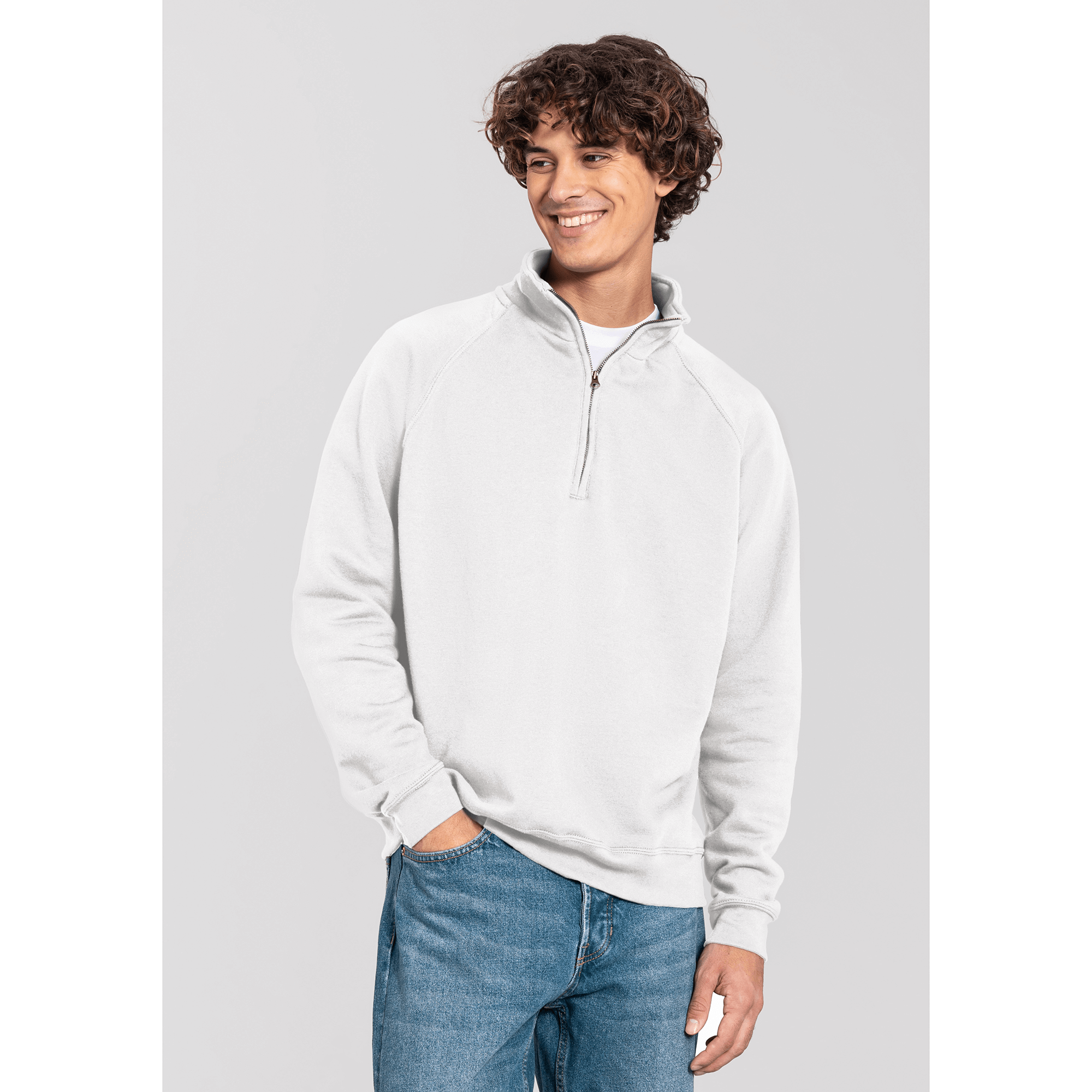 With its clean design, practical stand-up collar and soft surface made from 100% combed ringspun cotton, the Iconic Premium Zip Neck Sweat is the perfect choice for stylish decorations.Thanks to CiCLO® technology, it also makes a statement in favour of greater environmental responsibility. Classic fit # covered metal zip for enhanced printability, Tear-away label, brushed inner fleece, 1x1 rib at cuffs and hem with Lycra for superior comfort